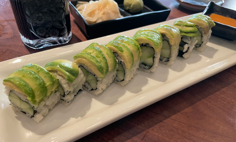 More refreshment arrived at the tail end of the meal with a vegetarian adaptation of a senshi roll ($23). Just cucumber, avocado and white rice served with an aioli sauce that was spicy enough to make even Sean Evans sweat.