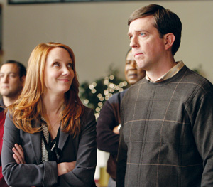 Ed Helms, the Larry Fine among the three stooges of The Hangover, is the film’s actual hero. He plays Tim Lippe, a salesman from the BrownStar Insurance Company of Brown Valley, Wis. His ogre of a boss sends him as an alternate delegate after a far more proactive salesman meets with an accident.