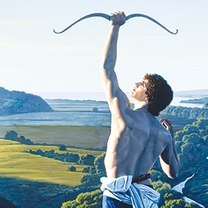 “Penelope,” (1980) one of Ligare’s earlier works, poses a seated woman against the horizon of a placid sea. She looks idly toward the viewer, relaxed and barefoot, bathed in afternoon light. Yet there is a tension in how alive she appears, how she might rise and walk at any moment. We remember the tale of the Odyssey, and how Penelope waits for her husband’s return—and here find a contemporary incarnation, in modern chair, by another sea.