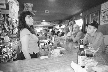 Frustrated, we head for home, stopping at Red's Recovery Room out on Highway 116--a legendary dive bar recently immortalized in song by crooner Tom Waits. Inside the tiny ramshackle landmark, a woman in a purple salsa skirt dances unencumbered 'round the pool table, while belting out a slurred rendition of Bruce Springteen songs. The woman behind this bar is harder and meaner than the men at either of the two rough-and-ready bars we visited earlier.