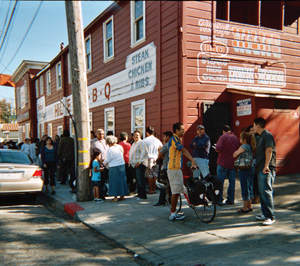 As the restaurant raged into the evening, more and more carnivores began to arrive and line up outside, including many folks who’d never previously set foot in the place. Between 3 and 5:30pm, Henry’s served 225 parties—much more than it usually does on a busy weekend night for a Sharks game.