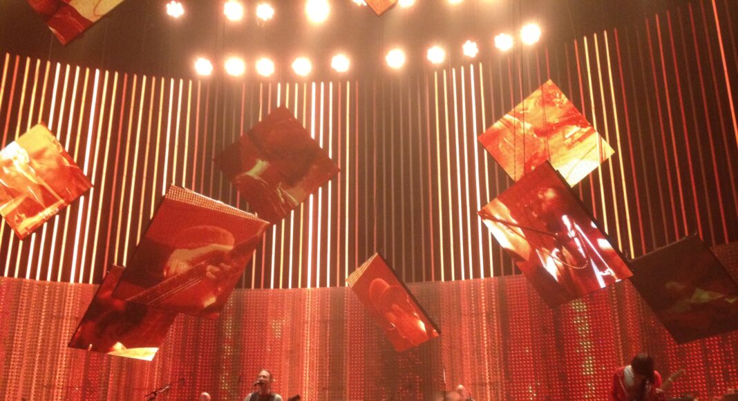 The stage and light show was truly out of this world. The light wall, made of recycled plastic bottles, was mesmerizing and elegant. Going from subdued to all-out visual assualt to fit the mood of the songs, it was their grandest display yet of lighting and stage design.