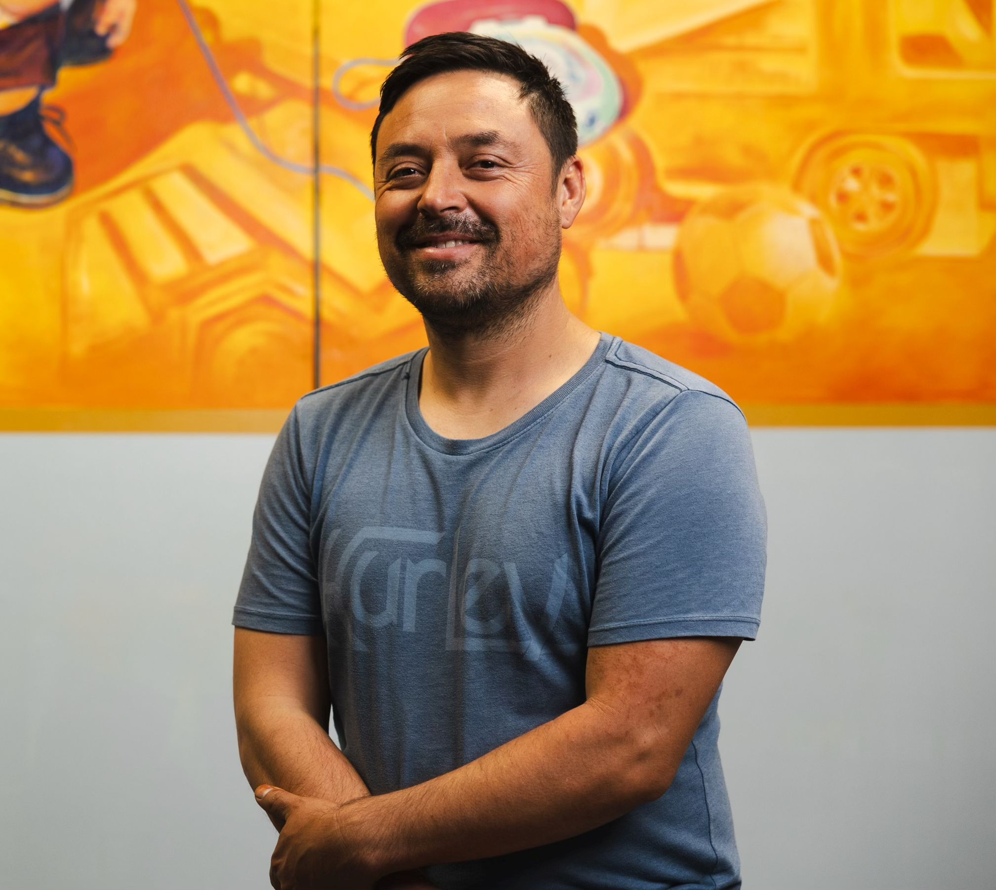 Francisco Ramirez’s “The Joy of Christmas” captures the jubilation and happiness of the season through the lens of a child. Featuring his son at play surrounded by nostalgic gifts, Ramirez aims to spread joy and warmth with a palette of cozy yellow hues. The mural subtly emphasizes the importance of toy drives and the shared happiness that the holiday season brings.