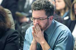Opposing Voice: Sonya Pelia listens to testimony in Sacramento.