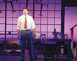Solid character acting also uplifts the show. Linda Piccone is a veritable Ann B. Davis (Alice in The Brady Bunch) as Sid's steady secretary Mabel, and Karen DeHart really relieves this comedy as Hasler's besotted secretary Gladys in the "Hernando's Hideaway" number. As Gladys escorts Sid to the Hideaway, where anonymity is the rule, and Sid plies and seduces her in a tango designed to obtain her cherished key to Hasler's ledger, DeHart gives the show's winning performance, starting with her steamy "I think my eyes just fogged up" and ending with Gladys dead drunk on the Hideaway couch. With the double-whammy of upward productivity and flat salaries suggested by "Seven-and-a-Half Cents" and "Racing With the Clock," this musical could feel satirically current. But somehow it doesn't.