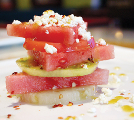 LAYERED GOODNESS: Sakoon turns feta, watermelon and tomato into a gem of a salad.