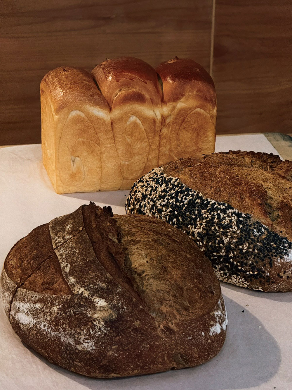 Kinako is a roasted soybean flour and one of several ingredients Belzunce incorporates into traditional sourdough loaves. In addition to their popular Japanese milk bread (which rises high like brioche), Milk Belly makes versions of sourdough bread with ube and coconut, hojicha and honey, and a mochi porridge loaf. Venters grew up in San Jose. He introduced Belzunce to kinako at the local bakery Shuei-Do Manju Shop on East Jackson Street.