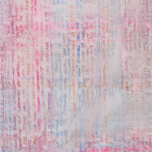 The artist Dashiell Manley paints the front page of yesterday’s newspaper as a blurry, baffling mess. In other words, he reveals a collection of faded headlines for what they are. In the exhibit New to the Cantor: Dashiell Manley, this “front page” series of watercolor pencils on canvas convey, at once, a literal and a figurative sense of a newspaper’s psychic and physical decay. This institutional rot was made manifestly clear during this year’s rancorous political season.