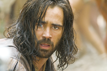 The New World has a simple romantic plot, with three different narrators. The film tells of Pocahontas' love for Capt. Smith (Colin Farrell), a roguish soldier who can't and won't stay. In 1607, the settler and the princess met after he was sent by his superiors on a suicide mission to the court of Powhatan (August Schellenberg). As the world knowsif only from the silly Disney versionshe saved him from being clubbed to death by order of her father.