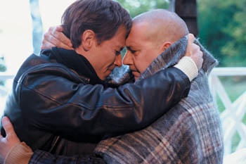 Like a Christian Scientist with appendicitis, Rémy the left-wing prof endures, saying that he voted for socialized medicine and now he'll face the consequences. Fortunately, Rémy is rescued by his estranged son, Sébastien (Stéphane Rousseau), a businessman who immigrated to London, where he earns more than 12 times Rémy's salary.