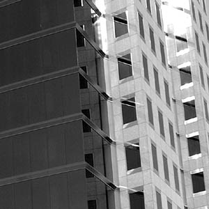 Almost City Hall Final Note: The photo is of the facade of the brand-new Sobrato building on Almaden Boulevard--a failed contender for New City Hall, despite being next door to the incomparable Kukar's House of Pizza. The Sobrato is shimmering, elegant and blue. (The Fourth Street Garage has panache as well, as does the emerging joint San Jose/San Jose State University library.)