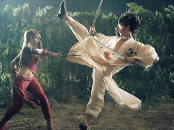 Talk to the Foot: Jennifer Garner parries the pedal thrusts of Will Yun Lee in 'Elektra.'