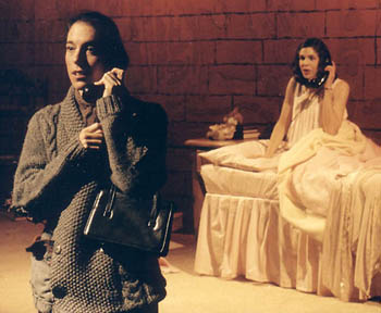 The production frames this past, Lusia's memories, by setting most of it on the bare floor space in front of the constructed stage platform that serves as Rose's apartment. (The platform itself has a sort of mutant star shape--abstract symbol or accident?--which works well thematically, but the jutting star points caused some awkwardness for actors on the floor.) A Shayna Maidel connects with the audience through icons--photo albums and dolls stand in for stories, stories stand in for emotions--which frees up the actors to simply become their characters. Still, the characters demand incredible focus and inner reserves. The City Lights company handled them with mixed consistency. Starkovich does a wonderful regression in the "Mama" sequence, but is less forthcoming in earlier scenes where the groundwork for that intensity should be laid. Lusia's missing husband Duvid (Mark Gavartin), in a somewhat underwritten role, remains more a symbol of hope than a man. Feinstein gives a powerful delivery when Mordechai compares his list (of deceased family members) to Lusia's more updated list. Mordechai reads and checks off the names of his dead brothers, sisters, nieces and nephews with a cool matter-of-factness that Lusia later compares to "taking inventory of dry goods." In this way, Feinstein gives his Mordechai a psychological armoring that is hauntingly reminiscent of the Nazis, who catalogued teeth and hair with the same clerical indifference. Barbara Lebow's text, rich with sayings (not to mention Yiddish language) that have universal appeal, speaks to anyone who's ever had a family. Rose and Lusia's Mama (Lisa Wiseman) was fond of saying, "If your grandma had a beard she'd be your grandpa." In the context of the play, she is telling Lusia there was nothing she could have done to save her mother. But as a saying it represents a nexus binding the generations. It echoes the parental saws we all remember rolling our eyes at, but over the course of the play we're reminded how those silly saws seem to gain untold wisdom as we mature.