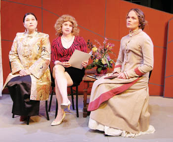 Loomer's humor walks a precarious line throughout the play and counts on its audience having an affinity for graveyard—or at least hospital—humor. For example, Forgiveness, now at the point of losing her atrophied toes one by one, chirpily explains to Victoria how her "feet would smell, and puss would drip terrible." Kobara's cheerful, never cynical delivery takes the sting out of some pretty gruesome details, making it easy to laugh (without feeling like a monster) at Forgiveness' twisted truisms: "At my age, who needs feet?" (a reference to the bound foot as sex object).