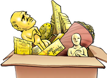 Along with those, you can be sure, there will have arisen several other new awards, all jostling for a moment in the award-culture spotlight. Because, just as with the Oscars, the Emmys, the Grammys or any of the others, winning the damn trophy is not what's truly important. What drives all these award-giving/award-collecting endeavors, be they large or small, is not anyone's fundamental desire to win. More likely, it's the incessant human craving--that basic, underlying, ever-present need--simply to be noticed.