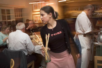 Forks went wild over desserts, diving like starving seagulls at warm chocolate cake with caramel mascarpone cream ($7.50), breadlike toffee pudding with butterscotch sauce, wine-soaked pears ($7.25) and pear and merlot sorbet ($6.50). Servers at the bistro are well schooled in the art of table management. Our waiter was knowledgeable, describing dishes succinctly and pacing our courses perfectly--but never hovering.