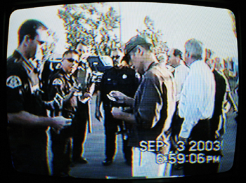 Corroborating evidence from the video tape and police reports, Sweezey says that because of concerns about the protesters from the previous years, HP Pavilion representatives had met with both the Police Department and the city attorney's office, specifically Karl Mitchell, to discuss what they could do to address their property rights concerns. "We went through the thought process with him [Mitchell], looked at blueprints," Sweezey says.