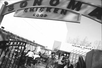WE WERE nearly forced to cancel our dinner plans that night, having forgotten that a Sharks game was slated for Saturday evening. The fans beat us to all the good parking places and then to our chosen restaurant. Fans clad in jerseys and caps arrived at the Sonoma Chicken Coop en masse and without mercy. They darted in and out, balancing drinks and plates of food as they made their way to tables in the dining room.