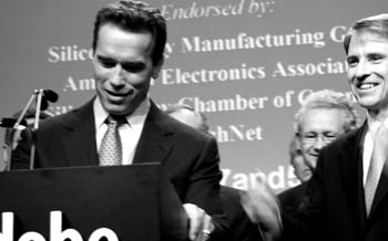 Corporate leaders might still fawn when Schwarzenegger works the room, dishing old Terminator lines. But workers will soon realize nothing's being muscled except their hard-won benefits.