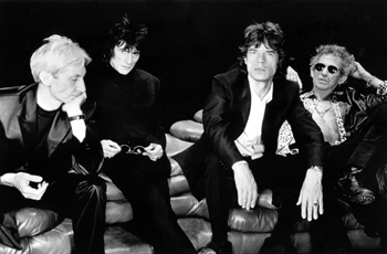 At 8:45pm, the group came out fighting--that is, they played "Street Fighting Man." Keith Richards, who has obviously missed out on the whole Botox revolution, was in ragged glory with open shirt and a bird's nest for a hairdo. Ronnie Wood resembled a SoFA street punk with leather jacket, T-shirt, tight jeans and cigarette dangling off his lower lip. Ex-Miles Davis bassist Darryl Jones was barely noticeable in black and gray, and button-down drummer Charlie Watts looked positively ecstatic--yes, that last part was sarcasm.