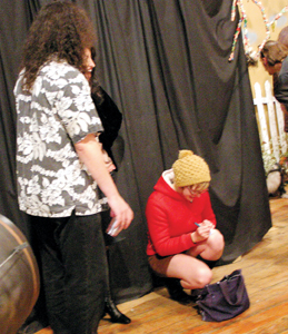 Anno Domini was obviously not Maria's sceneshe was too businesslike, perhaps, and was more interested in sciencebut she still moved effortlessly through the crowd. I was impressed with the way she initiated a conversation with women, allowing me to join in and eventually talk my way into closing the deal on some contact information. As we walked around sipping wine from a plastic cup, she approached a pretty woman in black boots, a skirt and red pullover jacket. Maria asked her if she liked the art show, which piece she liked best and so forth. At some point, I started chatting, not sure what I was saying. But at the end, I walked away with an email address and a tingling sensation from the flirting.