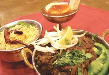 Kodu vepudu ($9.95), also called chicken fry, is a good place to start your introduction into Andhran food. The bone-on thigh meat arrives in a small copper pot suffused with the aromatic flavors of ginger, garlic, onion and chiles tempered by a little tomato. In the pot, it doesn't look like much, but it's an intensely flavored, succulent dish. In addition to the chicken vepudu, the various pulusu (a richer, currylike version of vepudu) dishes are also winners. Try the goat pulusu ($10.95). Lamb is common in most Indian restaurants, but I was pleased to see goat on the menu here. Like the chicken, it's served on the bone. This makes for some messier eating, but leaving meat on the bone imparts a richer, more flavorful dish. All of these dishes are quite spicy. Hottest of all was the royyala (prawn) pulusu ($12.95).