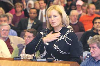 The unusually large turnout for an HRC meeting had come to see County Sheriff Laurie Smith address allegations of profiling by her department, which has come under fire after a demonstration last November outside Colin Powell's speech at De Anza College's Flint Center. Six of the seven individuals arrested by deputies at the protest were Muslims and the seventh was an African American.
