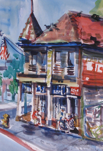 McKay will attend the public opening this Sunday from 2pm to 5pm along with some of the artists who are actually still alive. One of those artists is Sara Anderson, whose 1960 watercolor painting of the Faber's Cyclery building is included in the show.