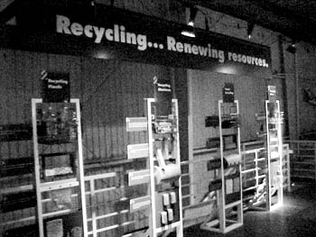 Just a quick trip up the stairs in the building across the walkway leads to an observation deck where visitors can view the $10 million state-of-the-art Materials Recovery Facility (MRF), spanning 80,000 square feet, making it one of the largest of its kind in the world. Yes, this is where the garbage trucks go after they pick up the recyclables from your curb, if you remembered to put them out the night before. Up to 1,600 tons of garbage can be accommodated here. The trucks back in and dump garbage onto a massive sorting floor, where large items are removed. In a bizarre form of Orwellian video surveillance, you can even watch the remainders pushed on a conveyer belt through a closed room where employees pick out plastic bottles, metals, glass and other recyclables. What a job. "The employees work in two shifts, one in the morning and one in the afternoon," explains Lori Peace, the recycling tour coordinator of the museum, who leads hour-long educational tours of the facility and the observation deck.