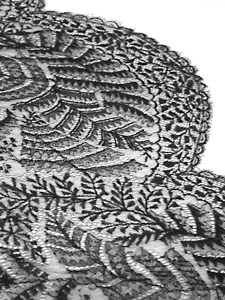 Lace is a versatile thing that shares our lives, be it decorating the curtains and bedspreads in our homes or trimming the clothes that we wear. It can be frilly and old-fashioned, sweet and girlish, or feminine and sexy. But what's particularly fascinating about lace is its place in history and the unique histories behind each piece. That bug lace dates back to 1880. The human-hair vest was made in 1865. And those human-hair flower sculptures and wreaths are somebody's long-lost family heirlooms from the Civil War era.
