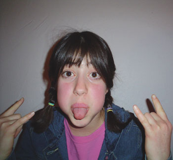 The big draw of the night was Sarah Kay, a pig-tailed 11-year-old dressed in Converse high-tops, jeans and a denim jacket, with a bright pink shirt that read "It's nice to be naughty." Some of her friends sat up front, laughing along at her lively act, which includes an array of voices. There's the Al Pacino-in-Scarface imitation, the Asian Indian, the Latino, the high-toned Englishwoman, the bad singer.