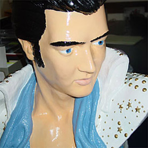 My wife knows how to hook them, knows that certain buzzwords and phrases mobilize their ranks, phrases like "Elvis memorabilia." (She's also after my Elvis toenail clippers and Taking Care of Business melon baller.) Like a Col. Parker with ovaries, she wants to cash in on the King. If she happens to do so by disposing of the ceramic monstrosity currently haunting her house, that would be a happy coincidence.