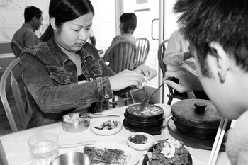 There are other menu items--a tofu salad ($3.75), bulgogi ($11.34) and, most recently, bibimbab ($11.34). Bulgogi is what it is--marinated slices of pork or beef layered on a sizzling platter. Eh. It has always come up short when I've ordered it. Save the bulgogi craving for another place, as there are many excellent Korean barbecue restaurants along Stevens Creek and El Camino. Bibimbab--the classic Korean rice, seafood and vegetable dish served in a stoneware bowl with a fried egg on top--suits Tofu House better.