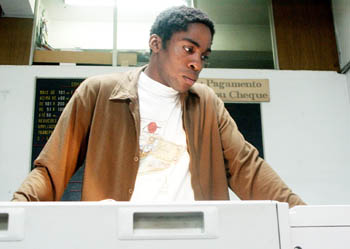 TRUE FACT: I supported myself for almost two years photocopying documents, and so I'm probably in a unique position to appreciate The Man Who Copied. The film is at times fluffy and cartoonish and, at times, copies other movies, but some meat clings to its bones. Although André (the handsome copy-shop hero played by Lázaro Ramos) lives in the small southern Brazil city of Porto Alegre, he could be a stand-in for any McJob-stuck young man in America. Particularly universal is the beginning, an excruciating scene that shows him negotiating with the cashier at the grocery store as she gets closer to the exact sum of money he has. Throughout, there are bits of dialogue and imagery relating to how Brazil has had the marks of colonialism impressed on it. André lives on Franklin Roosevelt Street and uses a Xeroxed Eleanor Roosevelt as the face of an old-lady school teacher in the cartoons he draws. André wonders over the statues of gondoliers atop a nightclub"I don't think we ever had gondoliers here," he narrates. And his new pal Cardoso (played by Pedro Cardoso) asks aloud why bars in Brazil have to give themselves English names.