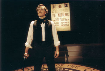 The Shootist: Robert Brewer prepares to take aim at Abraham Lincoln at Ford's Theater in 'Assassins.'