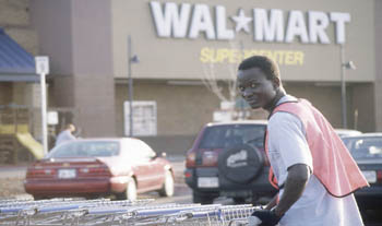 Job Opportunity: Peter Dut, a long way from the Sudan, toils at Wal-Mart.