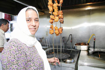 Skewered Perspective: Zebun Nisa, wife of owner Mohammad Usman, serves up chicken.