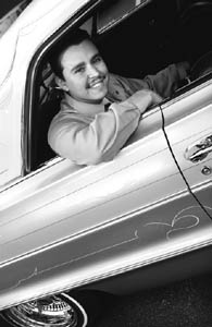 Mike Nevarez "hits the switches" for me in his '61 Impala. "Hold on tight," he warns with a mischievous grin over the peppy ranchera music booming from the stereo. I brace myself with the armrest because there are no seat belts (apparently this is legal if the original model didn't have them). As the car swings across four lanes in the middle of a left-hand turn, the right side rises a few feet in the air and sends me sliding across the leather seat.