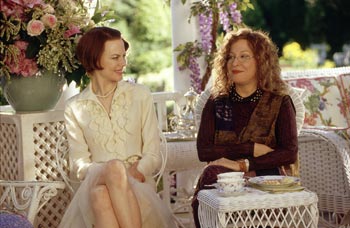 For a long time, Paul Rudnick (Addams Family Values) has demonstrated a reliable, snappy wit, a flair for catty writing. As a result, Bette Midler is funny as a slovenly Jewish novelist who somehow ended up in Stepford. Midler gets to go off like a bomb during an intensive discussion of Christmas ornaments. And the overpowering Midler really understands the expressionist style of acting for her horror scene after she's transformed. (I'm not telling a secret; it's in the previews.)