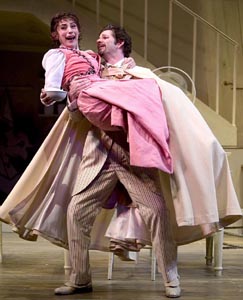 Carl Sternheim's original text (Die Hose) is adapted rather tamely by Steve Martin, and the sexual innuendo is so tired it yawns, perhaps the reason for the hyperbolic sexual pantomiming, which sometimes saves the text. What is frightening about the fact that this catatonic bawdry drew extensive laughter at a recent production is that it indicates some resonance between our current sexual climate and that of the hypocritically repressed era of the early 1900s. (Ya think?)