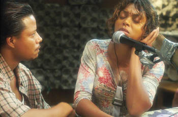 But there's just one little problem. To use an old-fashioned word, Hustle & Flow is sexist. It's more than just the musical posing of the pimpthe scene of DJay trying to select a title from "Beat That Bitch" to "Stomp That Whore," before settling on "Whoop That Trick." DJay makes his hardest-working girl, the countrified, ex-lot lizard Nola (Taryn Manning), his "financial backer," in the same way that an orange vest makes a man an "associate" at Wal-Mart. Every woman in this movie learns to respect the dick: Key's argumentative, then docilely obedient wife, Yevette (Elise Neal, who is quite funny at first); Nola, who learns to not mouth off and to do what she's told; and Lexus (Paula Jai Parker), who gets herself and her trick baby kicked out for doubting Djay's calling. The pregnant Shug (Taraji P. Henson, whose heavy-lidded, half-bright sweetness reminds you of Steve Buscemi in The Big Lebowski) finds new strength singing chorus on a song about the toughness of a pimp's struggle. (I bet it's a nicer life than being a whore.) The hole in this would-be realistic movie is the question of Djay's sex life: Who is he screwing? If we knew that, we might be less inclined to believe he lives in harmony with his three-girl stable, as if they're his impetuous housemates.