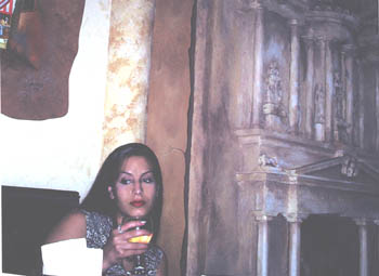 By the last bite--half the dish came home with me--the hypnotic music grew louder, and a fabulous apparition in gold jewelry and green silk began undulating down the main aisle of Kan Zeman. Finger symbols tinkling exotically, Sefarah--big, blonde and beautiful--shimmied and swirled skillfully through the room. People outside stopped to gawk.
