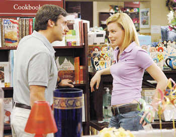 When his co-workers, David (Paul Rudd, Clueless), Jay (Romany Malco, TV's Weeds) and Cal (Seth Rogen, TV's Freaks and Geeks), learn of Andy's condition, they do not laugh. Rather, they pool their collected wisdom and experience to get him laid. Some of the boys' subsequent ideas, like the old "hiring a hooker who turns out to be a transvestite" gimmick, inspire yawns. But the movie's other ploys work in weird ways. Acting on advice to ask women lots of questions, Andy approaches an adorable bookstore worker (Elizabeth Banks, Seabiscuit) and, after a weird dialogue, gains her freakish admiration.