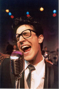 The play's handling of Holly's death was rather enigmatic. In all of half a minute, with a darkened stage and Holly's lone guitar spotlighted, a radio announcement about "the late great Buddy Holly who died today along with ..." turned the fact that three famous musicians--not to mention a play's main character--had just died into a footnote. When the lights came up, out bounced Holly, Valens, and the Bopper for a resurrection encore of several songs. I know musical is all about "happy," but there has to be a better way to rewrite a tragedy--say, calling it over when the fat guy sings.