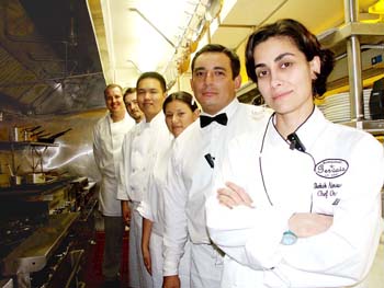 Reheating History: Gervais' new staff, including (right) owner/chef Shekoh Ainsworth and (second from right) co-owner/pastry chef Mark Ainsworth, reinvigorate its European menu.