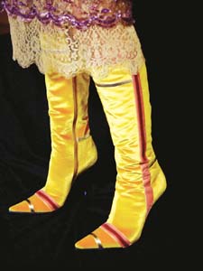 De Cre's beaded purple dress with French lace lining takes on Giuseppe Zanotti's velvet yellow boots.