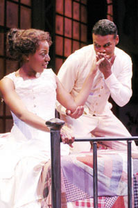 In each environment, Esther can show only small bits of who she isshe can be a little playful with Mayme, a little sensuous with Mr. Marks, a little vulnerable with the white, wealthy Mrs. Van Buren. And Michelle plays the character superbly. Until she's drawn out by others, Michelle's Esther seems inscrutable, one of those dour, inaccessible personalities attributed to the stereotyped "spinster." And it's easy to see why, when Esther's landlady, Mrs. Dixon (Robin Braxton in a nice combination of naysayer and motherly friend), reminds Esther of her limited options as a single 35-year-old woman. Michelle is so miserly in doling out the bits of Esther's constricted personality that when she smiles, it feels like a reward, and when she cuts loose, it's as though she's untied the proverbial corset strings and taken a deep breath of air.