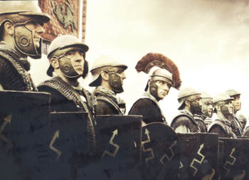 The sets, constructed at Cinecittà studios in Rome, are grander than the backdrops in ABC's pre-emptive miniseries Empire but still look underpopulated compared to the days when Cecil B. De Mille could command legions of extras with the snap of a paycheck. HBO is banking on the grossness of ancient life (the raw food, the open sewers, the pasty complexions) to paper over a script that neither meets the poetical standards of Shakespeare nor matches the malicious wit of I, Claudius, the 1976 BBC 13-parter on which the makers of Rome have admittedlyand wistfullybased their show.