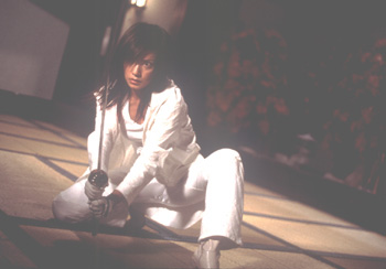 But Lynn's signature weapon of mass destruction is a recording of the Carpenters' musical chunderpump "Close to You." The song, if you want to call it that, is the Angel's method of clogging surveillance devices. Still, it's apparent, from the way director Corey Yuen pauses from different angles, once, twice, three times, to observe the slo-mo whipping of Shu Qi's hair as she struts down the halls, that he's got a severe case of Wong Kar-Wai wistfulness. "Close to You" persists through the movie, in the same way "California Dreaming" kept turning up in Chungking Express.