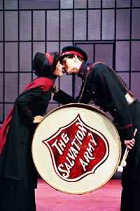 These ripostes often drew theater-as-political-rally bursts of applause from the audience the night I attended. Still, Ross' Barbara is no bleeding-heart cream puff; in some ways, she comes across as rather a spirited chip off the old block who, like Dad, enjoys the power of a good conquest, albeit with a touch more romantic obsession. Singer's Cusins is sufficiently geekish in his plastered hair, Salvation Army uniform phase, but as he sheds that ruse (donned mostly to win Barbara), he comes to sport a Hugh Grant charm in time to hold his own and haggle hardy with Barbara's father. A most impressive Glynis Bell plays both Lady Britomart (her hands are mesmeric) and Rummy Mitchens, stretching from the high brow to the low and back again. And, oh, for her black, gray and metallicchained and silver-buttoned hint of militarydress (excellent work by props by costume designer Anna Oliver)!